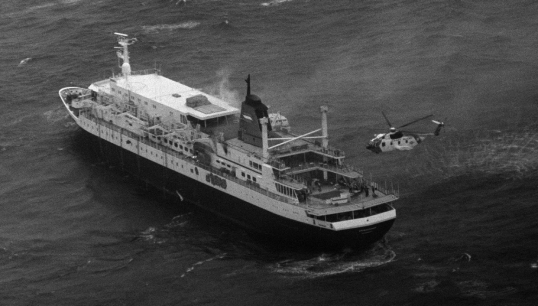 In freezing conditions, 45-knot winds and 35ft seas, the 563 passengers and crew were forced to abandon ship and were rescued by the US-flagged tanker Williamsburg – whose crew received commendations for their 'deeds of extraordinary American seamanship and maritime skill', as well as US Coast Guard and US and Canadian Air Force helicopters.